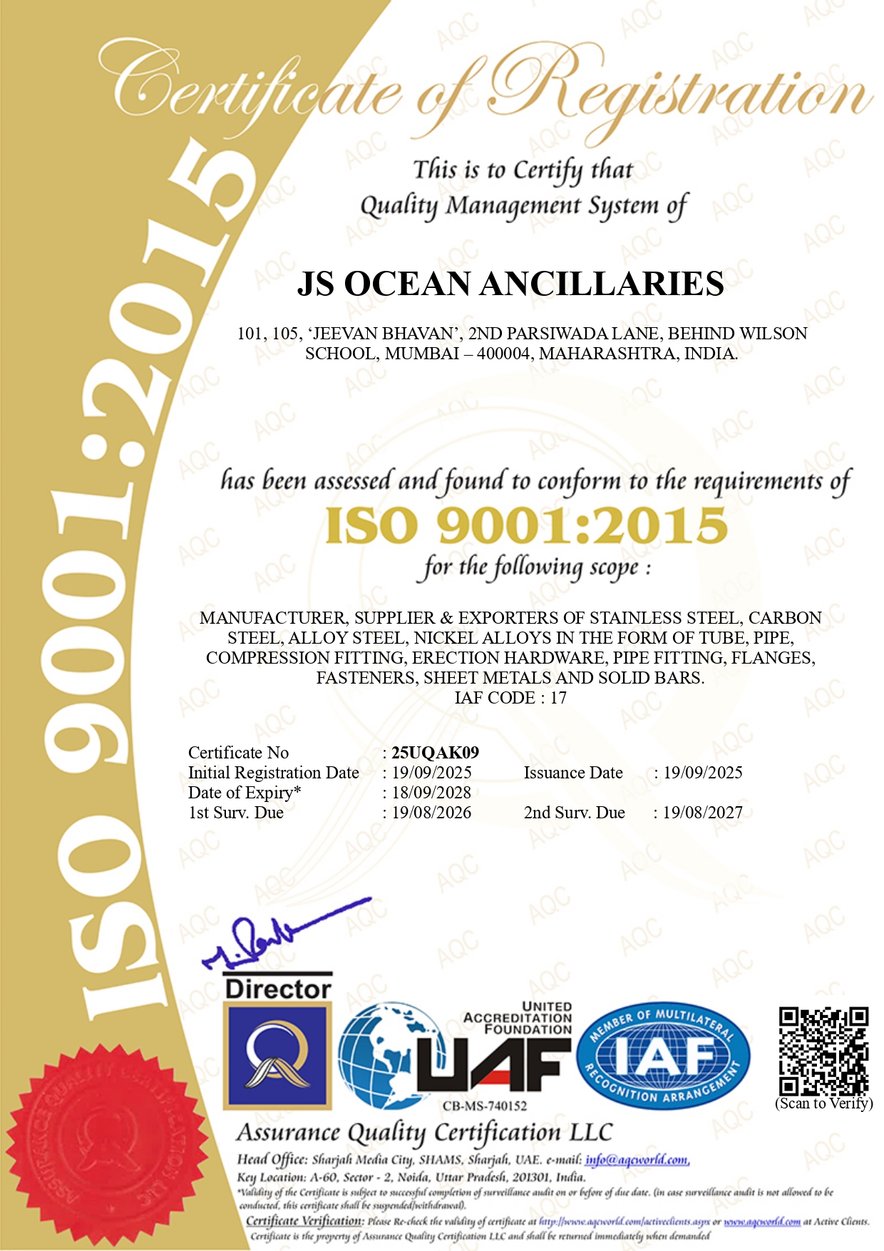 8 | Hydrostatic Pressure Test | Test Pressure | 100 % Inspection at test pressure specified as per ASTM Std. |